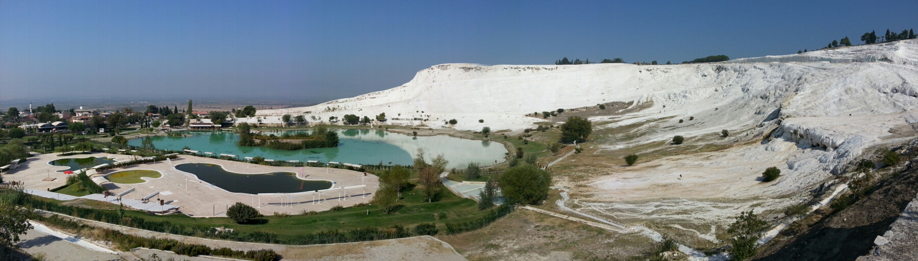 Beyaz zemin, üstümde güneşli masmavi bir hava ayaklarımda 36 derece vücut ısısında suyla yukarı havuzları geçerek ulaşabiliyorsunuz. Kendi aracınızla Doğu girişinden giriş yaparak aşağıda inebilirsiniz. Oraya toplu ulaşım yok.