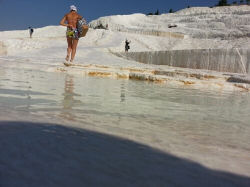 Bu havuz tarihi bir havuz. Hierapolis döneminde insanların şifa bulmaya geldikleri bir yer olarak biliniyor. Bol sayıda turist kardeşle, kardeş kardeş yüzdük. Sonra bir de şezlonglarda güneşlenip günümü tamamladım.